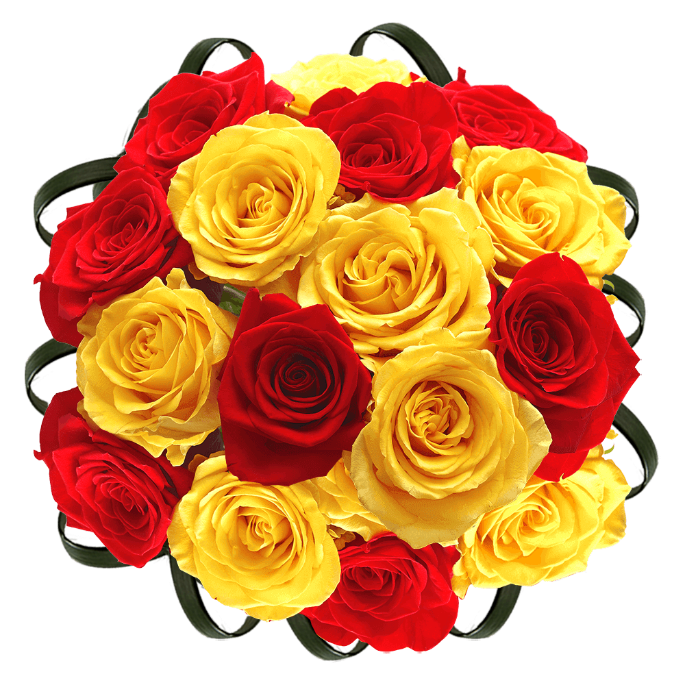 Each centerpiece is a magnificent arrangement of 36 flowers. Vase not included. Each box comes with 3 terrific centerpieces and each arrangement contains; 16 stems of Red and Yellow Roses and 20 of whips of Lily Grass.