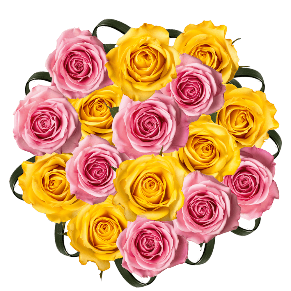 Each centerpiece is a wonderful arrangement of 36 flowers. Vase not included. Each box comes with 3 stunning centerpieces and each arrangement contains; 16 stems of Yellow and Pink roses and 20 whips of Lily Grass.