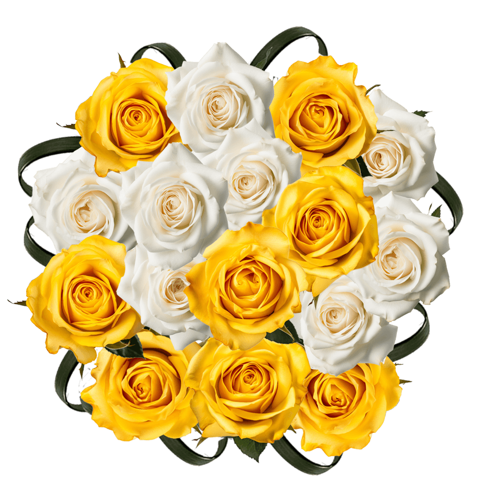 Each centerpiece is a divine arrangement of 36 flowers. Vase not included. Each box comes with 3 elegant centerpieces and each arrangement contains; 16 stems of Yellow and White Roses and 20 whips of Lily Grass.