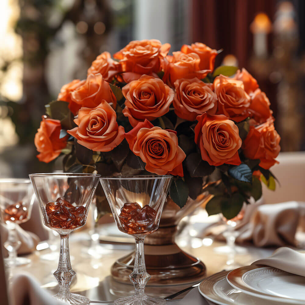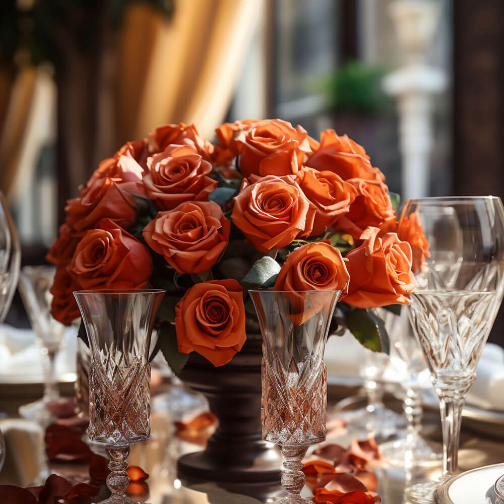 Place our Fresh Terracotta Wedding Rose Centerpieces in your setting for a memorable touch.