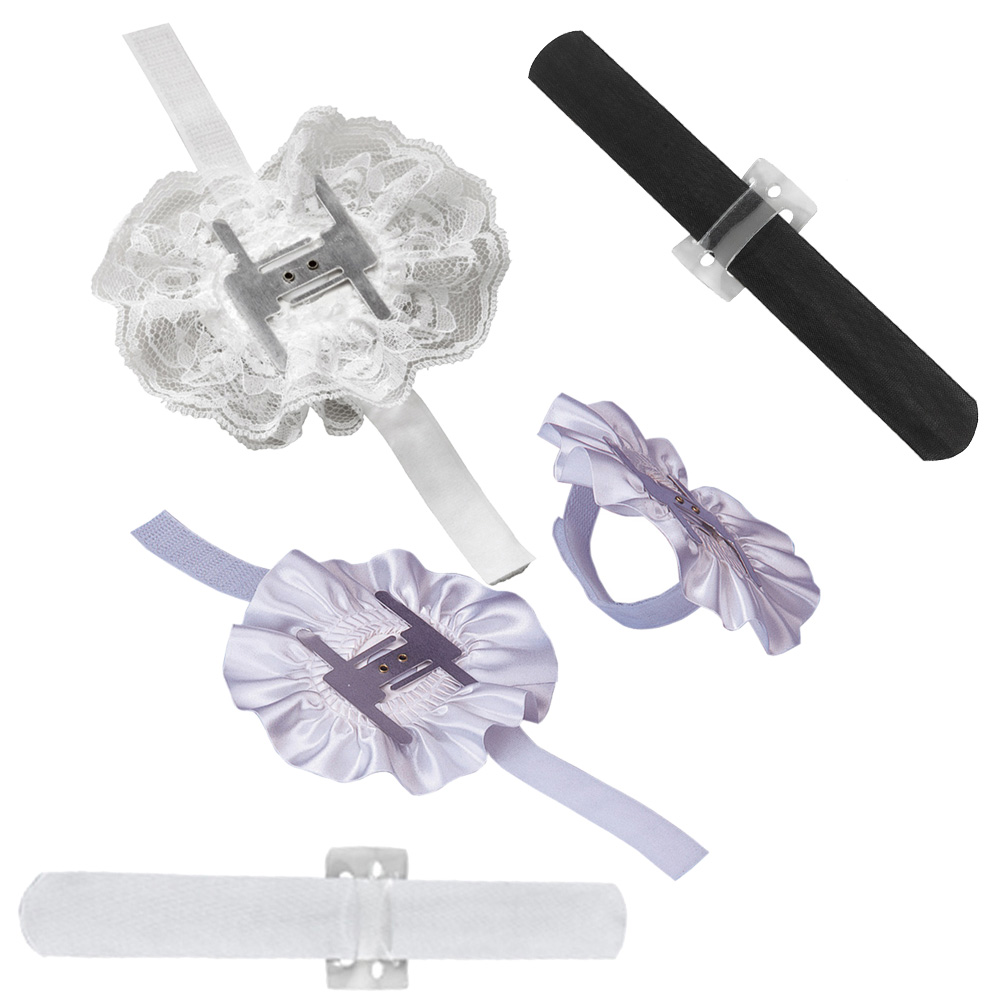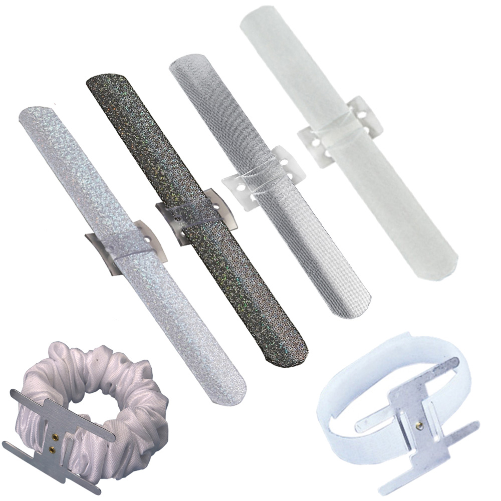 open_with Size | Each wristle has a metal clip to secure flowers. |